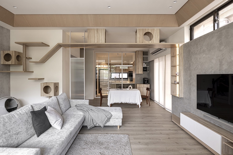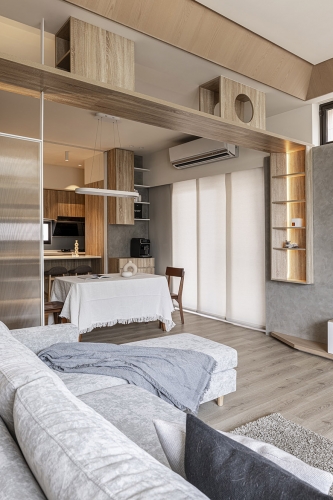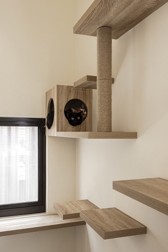 諾貝爾和平獎得主亞伯特・史懷哲,曾說過:「音樂和貓,可以為悲慘的生活帶來慰藉。」這麼說或許有些誇飾,但對於一屋三貓和擁有樂器收藏的屋主來說,或許確實如此。本案以「和貓共生」及「貼近生活」為主旨,在動線規劃與機能配置上,皆圍繞此核心,企求打造一處久居舒適、貼心順手的溫馨暖居。