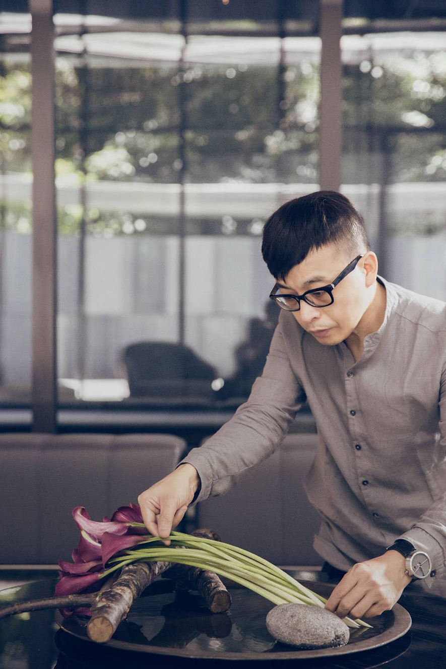 有種藝術、在轉瞬流逝的燦爛生命中尋找永恆而寧靜的美感,在感性的外皮下以理性的思維勾勒出成品的所有形貌。花卉植物的美如此顯而易見,在其中微小的脈絡、姿態中特寫出更加深層而獨特部分便需要更深的偏執與精準的目光。朱永安老師經歷了西方抽象思維的洗禮,並將其投回自身文化,在漫長悠久的底藴中緩步濯洗出一幅寧靜中自有偈語的畫卷。花藝從不單只是虛華的裝飾,而是人文與思維的鏡射,自我定位的詮釋與偏執;在生命中一場迂迴卻篤定的追尋。
