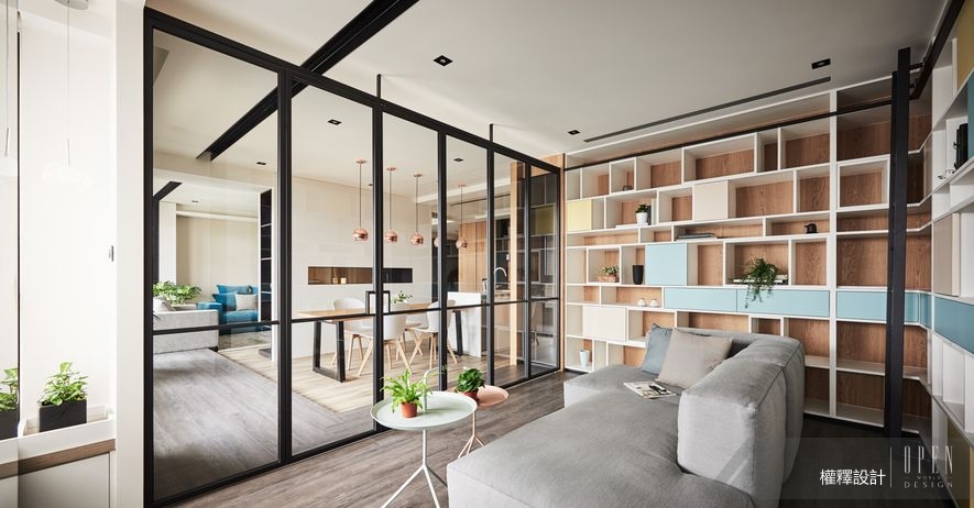 本案屋主企求打造一個全家人共享的「居家圖書館」,因而在格局上採開放式設計,並於空間中各角落發揮巧思,讓喜愛閱讀的夫妻倆,滿足隨處取書的想望。另外針對男主人收藏樂高的嗜好及考量小孩的活動空間,設計師為每一處量身規劃,使機能與美感融入空間各角落,讓一個空間不只是單一功能而能物盡其用,在有限空間內發揮最大的效用,因此往往帶給業主超乎預期的驚喜與感動。亦串連起居家生活的美好想像。