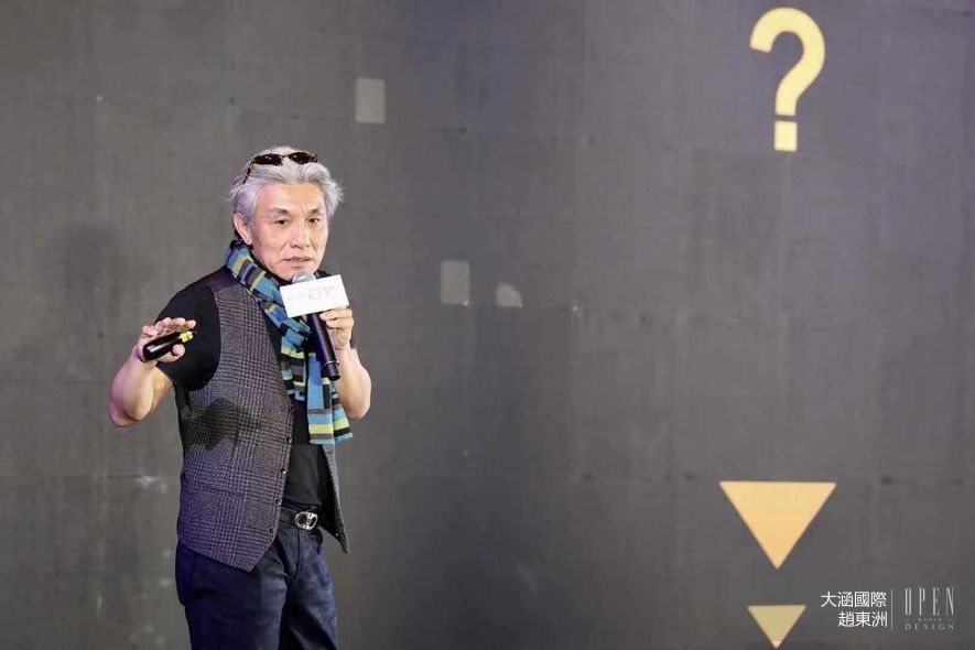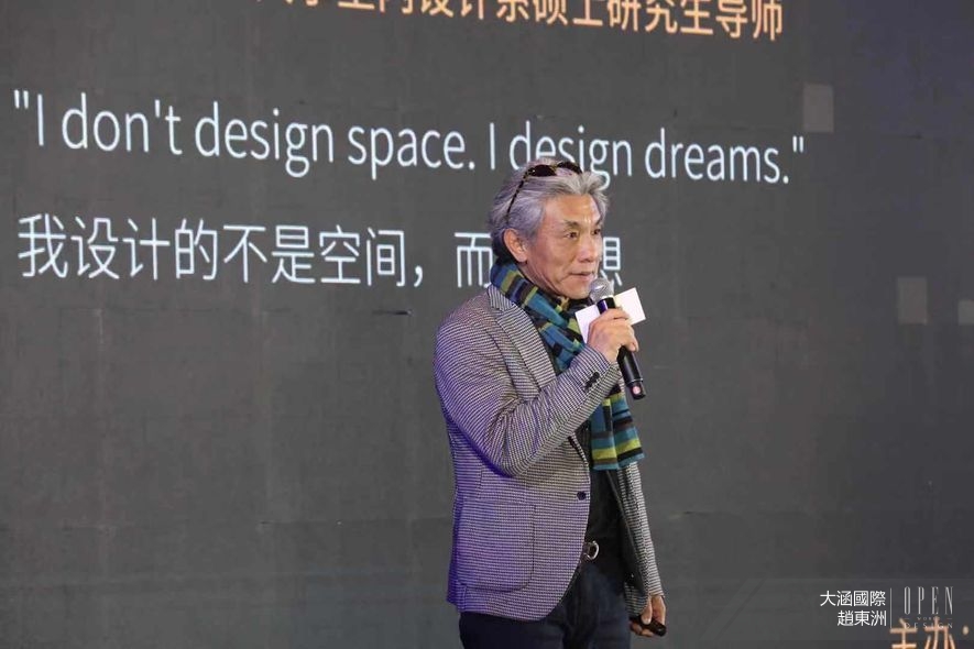 「我設計的不是空間,而是夢想!」是總監時常自我鼓舞的話語,本次更呼應設計週理念「創設美好新高度」,將踏足產學界數十年的經驗抽絲剝繭,梳理出基本的設計門路,為聽眾拂去層層的美學迷津。除卻條理分析,空間的實際案例更不可少,以一件住家作品的廊道構想出發,總監緩緩問道「對設計者而言,一進主臥室的端景,該是照片牆?還是一件裝置藝術?」於趙總監來說卻是兩者皆非,反而應是「喚醒生命記憶的象徵物」;因此在那件作品中,他取樣屋主夫婦年輕時表達愛意的情書,擷取隻字變形並幻化為一幅潑墨山水畫!如此意想不到的巧思,既是設計師對於空間的鍾情表現,同時亦是對人心的深入體貼,使住家場域擁有居住者的情感密語。