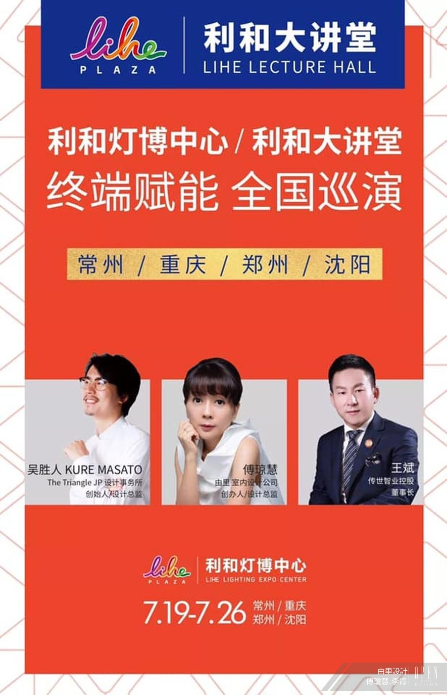 本月22日至26日,軟裝女神 由里設計 傅瓊慧 設計總監受中國利和燈博中心之邀,登陸「利和大講堂——賦能終端」全國巡演活動現場,飛往重慶、鄭州、瀋陽三大都市,將長年的美學經驗以「燈飾照明」為主軸貫穿,針對中國市場現況進行精闢剖析,更進一步重申「燈光設計影響氛圍」這項重要線索,令眾家線上燈飾產銷相關人士耳目一亮,紛紛給予熱絡回饋,更使由里品牌獨特的空間美學,在女神離開後持續在一線都市延燒!