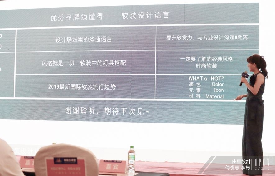 為回應各站高漲的呼聲,活動腳步先行抵達重慶站,傅總監以本次巡迴演講的重要主軸——「軟裝設計語言」,扼要地列出四大要點:「流行趨勢」、「整體風格」、「設計落地」及「創作理念」,深化聽眾記憶之餘,亦作為適用於產業各式變因的解方,成為明確的思考路徑,引領各路經銷商走出困境。台下聽眾無不大為驚嘆總監的「設計銷售」技巧,相繼提出期望日後能有更多交流的呼聲,使演講在收穫滿載的佳境中圓滿落幕。