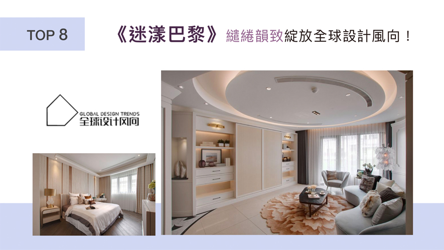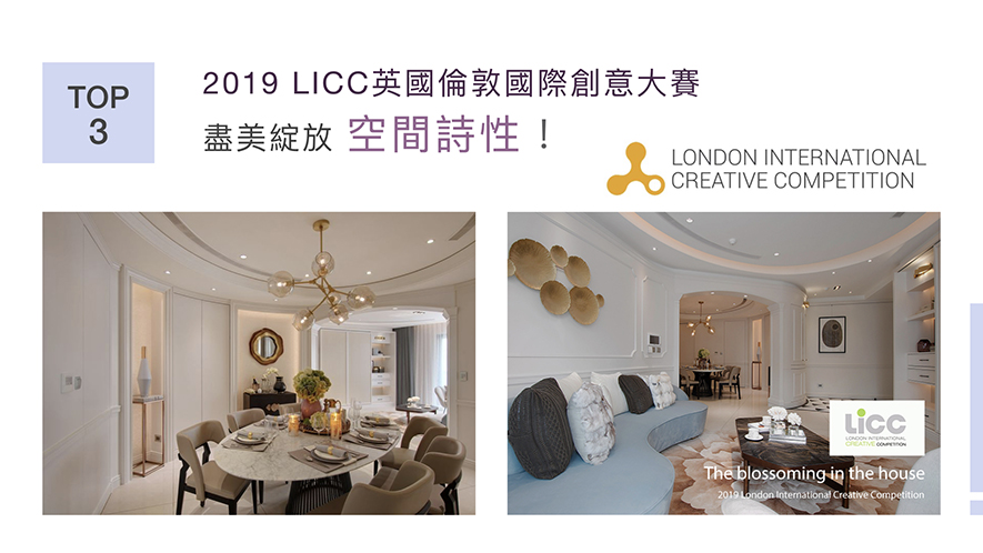 被嘉許為「全球最具潮流指向性」的英國倫敦國際創意大賽(簡稱LICC),至今已擁有十三年賽事經驗,每年的獲選作品皆引領建築、繪畫、影像等十一大創作領域齊步向前。以住宅空間為載體,Debby總監融匯建築大師高第的曲型量體概念,及法式風格中典雅的色彩線條,憑藉住宅力作《迷漾巴黎》摘下「建築類榮譽提名獎」!