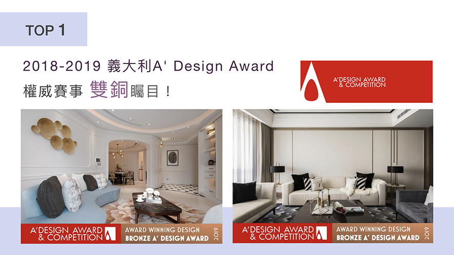 在僅有5%的獲獎機率下,Debby總監成功化開重重考驗,以唯美的新法式作品《迷漾巴黎》與精緻內斂的住宅之作《金迷風尚》,將設計者獨有的內建築觀點及靜美手法一次呈獻,兩件作品分別傳達出「自然」元素與現代生活的細膩交融,以及對「奢華」風格的再詮釋,因而雙雙攬獲室內設計類「銅獎」殊榮!