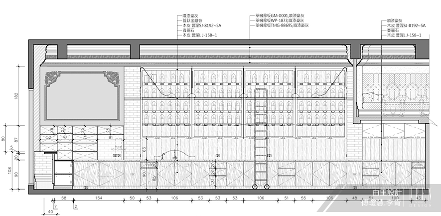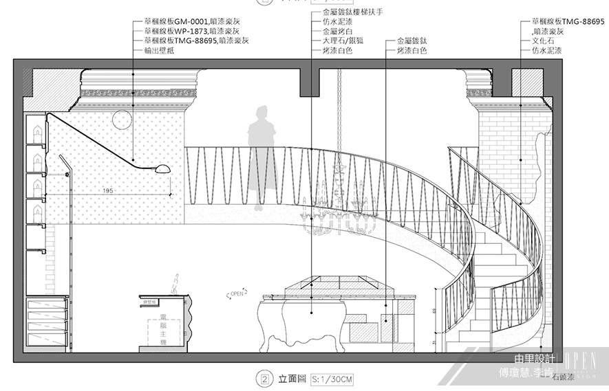 主要建材:復古鏡、鍍鈦、噴漆、文化石、藝術塗料、大理石、鐵件、馬賽克磁磚、復古磚、訂製燈、線板
