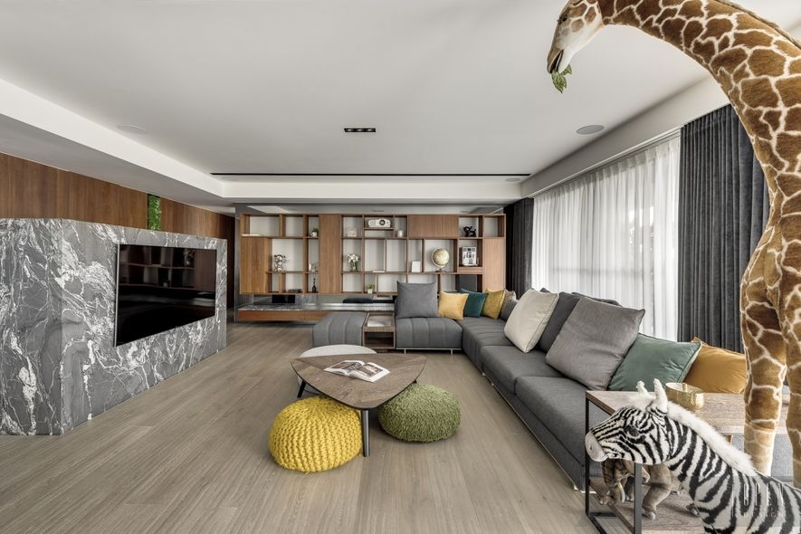 戴:空間裝修氛圍,絕大部分是透過觸碰及視覺的方式發想,而這部分就要在材料上下功夫,比方你想要呈現溫暖,就會在木紋或布紋中挑選,且拿捏上需要得當,同樣的東西也有不同的感觸與層次,同時也會給人不同的感受力道,比方想要自然野性抑或都會叢林感覺,我們就會在想要的感覺上取決細膩度,像是在木紋厚實度及皮革上都會有很多的調整,這地方就跟香氛很像,差一點點就差很多。