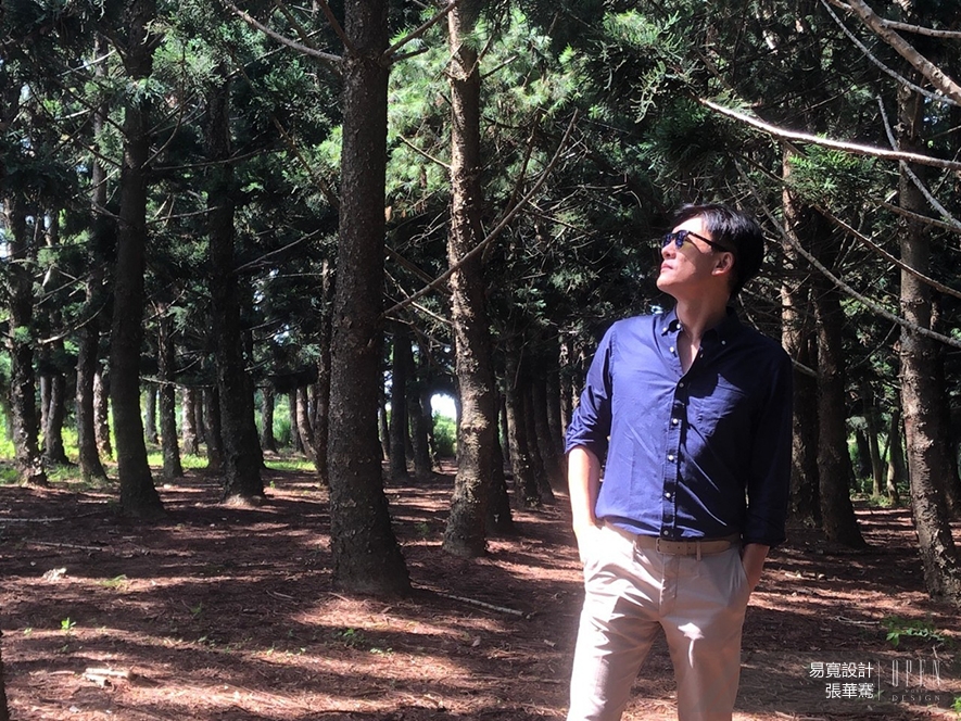緊接著,第二天的行程,團隊把場景拉到九天黑森林,在大自然的洗滌下,現場的人於心境上也跟著平和,而隨之灑落的陽光照耀於總監身上,顯見他想給予令人五感舒緩空間的心:畫面也帶到他與同仁間的互動,和睦討論設計相關事項,在旁人眼中著實是為鄰家大哥。