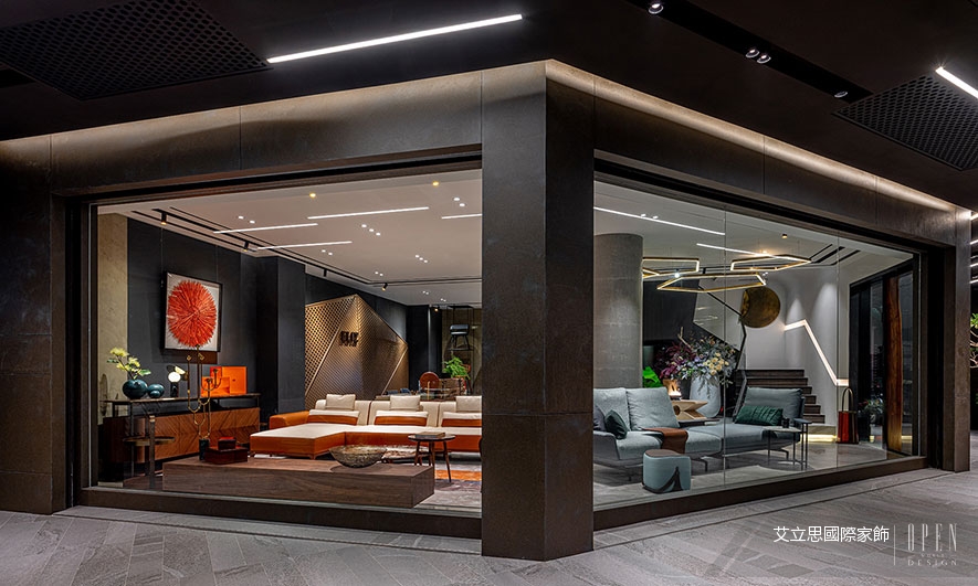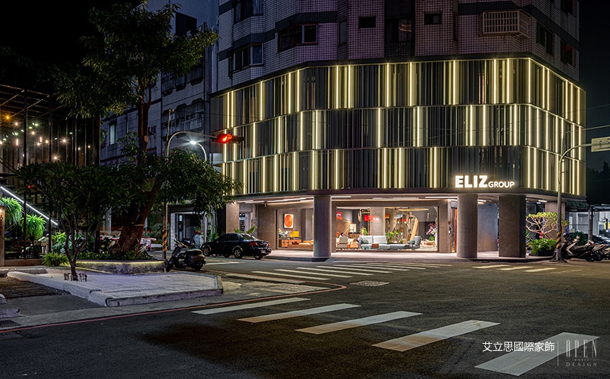 (圖)艾立思軟裝集團位於台中的旗艦店,以鐵件格柵搭配燈帶的大氣外觀,以及店內繽紛的家具展示,呈現宛如精品飯店的時尚質感。口碑優良 吸引多方客源