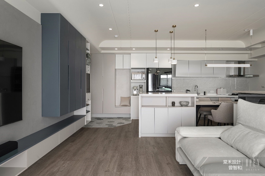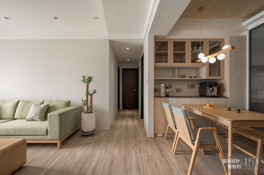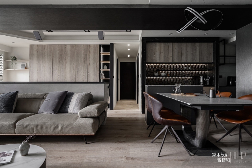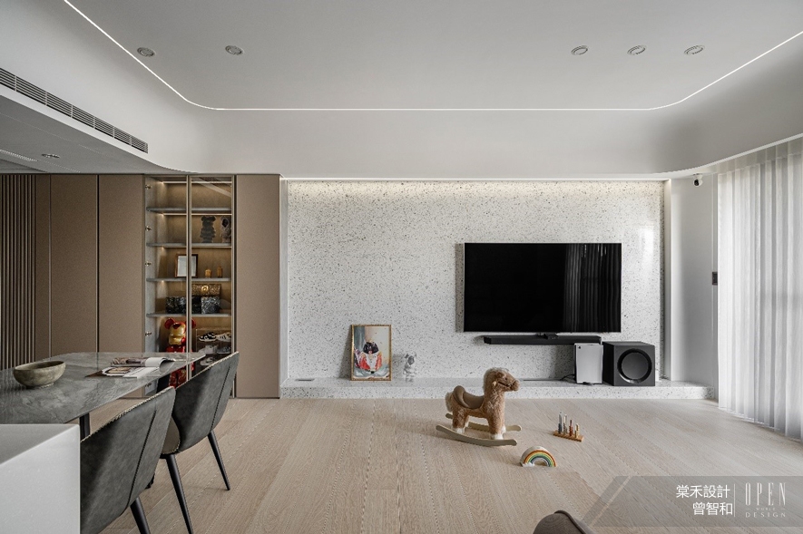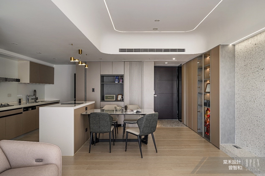 致使居者需求轉變的綠色趨勢,既給團隊帶來挑戰,也激發其在材料應用上的創新思維。「相對以往,如今透過技術,市面上出現真實木材上面不會有的顏色與紋路,相信未來會有更多設計靈感。」曾智和總監興致勃勃地闡述中,透露出對新材料無限可能性的熱切期待。這一點也體現在《蔚瀾寓所》作品中,棠禾運用仿木紋材質及系統櫃,保留木材的溫潤質感同時,符合環保和健康的要求。其創新應用不僅獲得了客戶讚賞,也讓團隊在競爭激烈的市場中贏得獨特優勢。