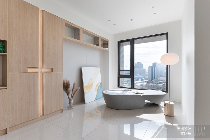 「很多屋主都希望設計做滿、做好,但我更期望他們能有未來收納概念,因此最理想的狀態是到7分滿。」總監闡述這種做法為住戶日後生活保留空間的彈性,「剩餘的空間是為了存放居者以後的回憶。」這種「七分滿」理念正是屋媞設計為業主著想的更高層次服務,不僅滿足當下需求,更為將來預留做準備。