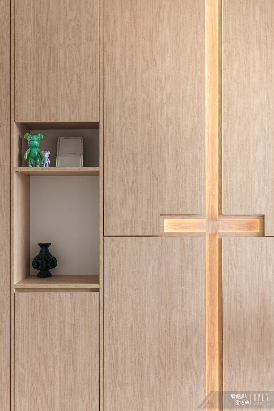 屋媞設計的關鍵內核,在於他們如何在傳統與創新之間找到平衡。除了風水外,團隊也會將部分客戶的信仰元素融入設計中,如在作品《慢漫時光》中,便透過門把勾縫做十字架圖案,滿足客戶信仰需求,且保持整體設計的和諧統一性。