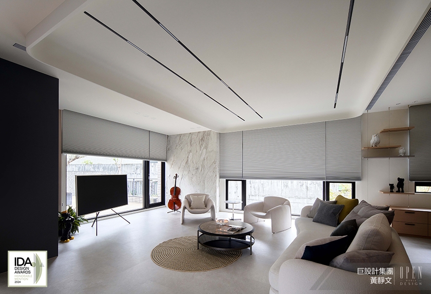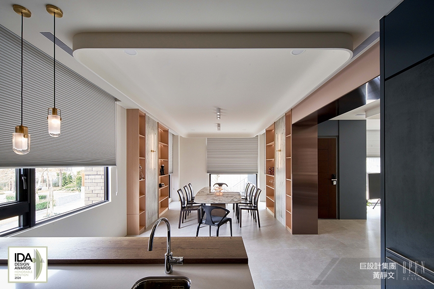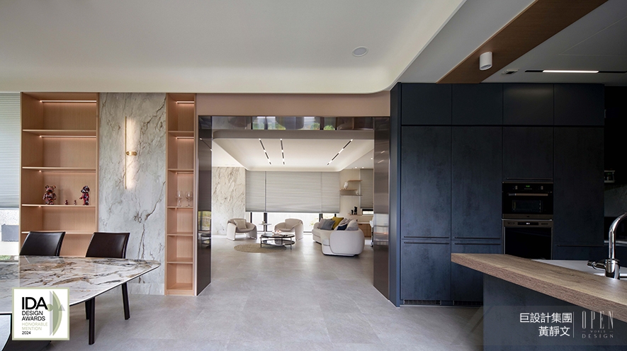 美國IDA 國際設計大獎(International Design Awards),旨在表彰「設立新標準」與「突破室內設計界限」、「改變人們生活和工作空間」的優秀設計師及團隊。以創新性、實用性和發展性等多種面向為評選標準,發掘建築、室內設計、產品設計、平面設計和時尚方面的新興人才,每年吸引來自數十個國家的頂尖設計者,競相角逐此項權威大獎!巨設計集團 執行長 黃靜文 以舒適純淨的灰白色調為基底,輔以溫潤木質元素,營造靜謐祥和的自然氛圍。透過落地窗引入豐沛天光,勾勒空間光影律動,伴隨園景翠意盎然,彷若臻臻山林隱居的《漫漫映山水》喜獲本屆賽事「Honorable Mention」榮譽!