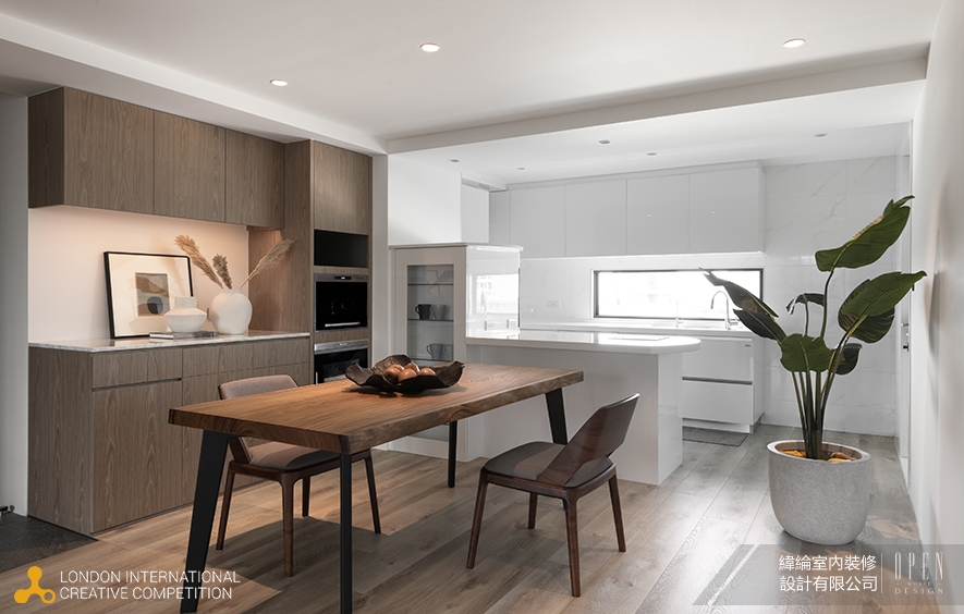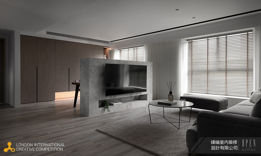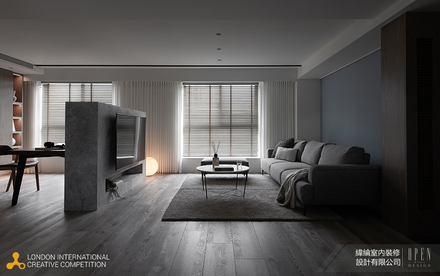 全球指標性設計大獎London International Creative Competition(英國倫敦國際創意大賽,簡稱LICC),是由來自Farmani Group的兩位藝術家Launa Bacon和Hossein Farmani所成立的,於2006年開展至今,已有十九年歷史,每年皆向多國設計好手發出邀請,藉由評選出當中佼佼之作,引領建築、繪畫、影像等11大創作領域齊步向前,參賽作品除了能與各國大將切磋,更能得到將作品展示於世人眼前的大好機會!緯綸室內裝修設計有限公司 以沉穩灰色調打底,搭配石材、木質的天然紋理,凝塑溫潤質樸的居家氛圍,並藉由開放式公領域連結客餐廳及書房,同時引入舒緩情緒的柔和照明,營造出消弭疲憊的舒適宅邸《寧然》,於2024 LICC英國倫敦國際創意大賽中備受矚目,勇奪「Official Selection」殊榮!