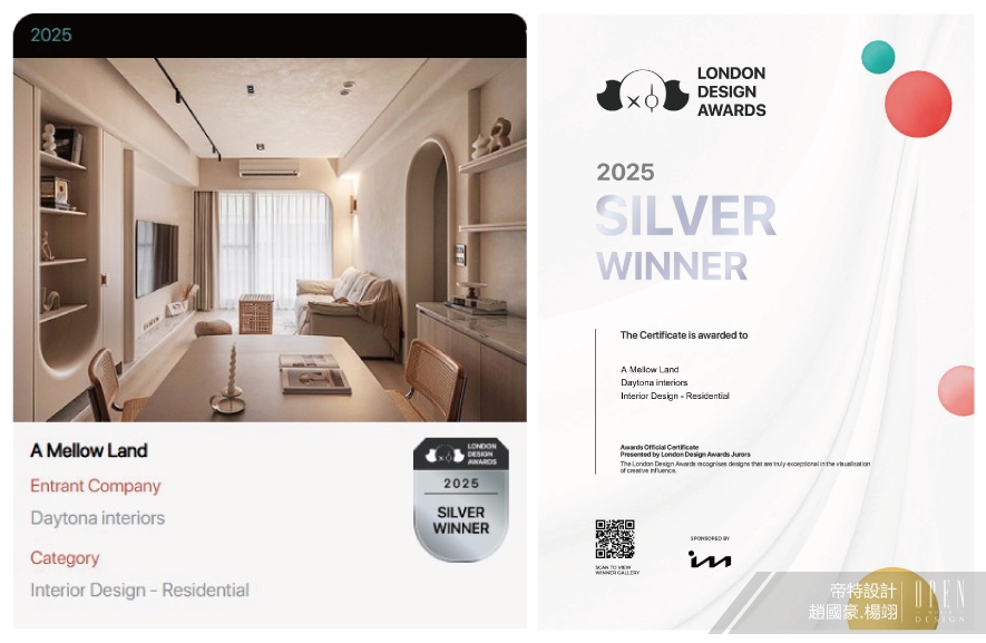 【帝特設計】2025 LONDON Design Awards 趙國豪、楊翊琢奕粹境載譽金銀!