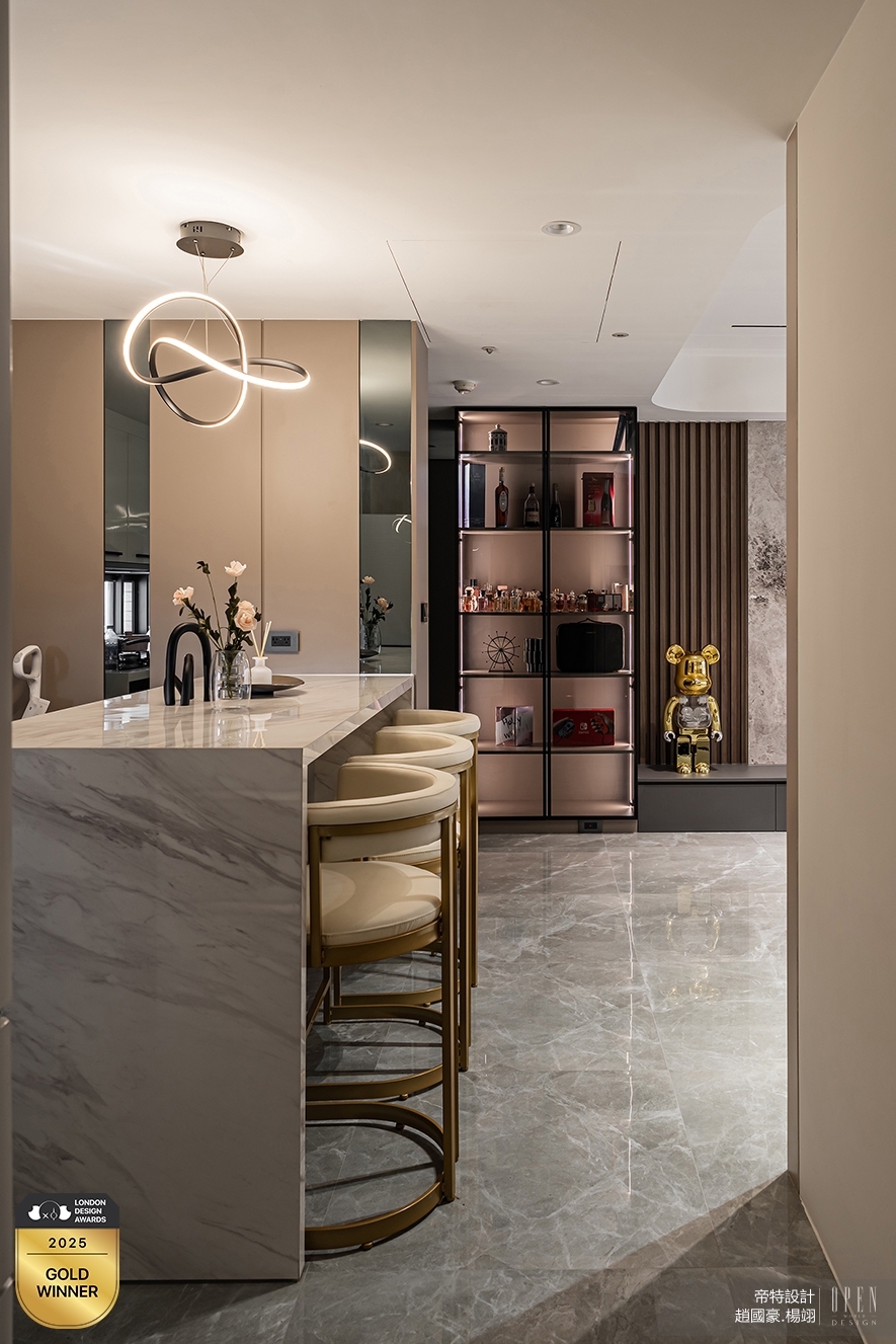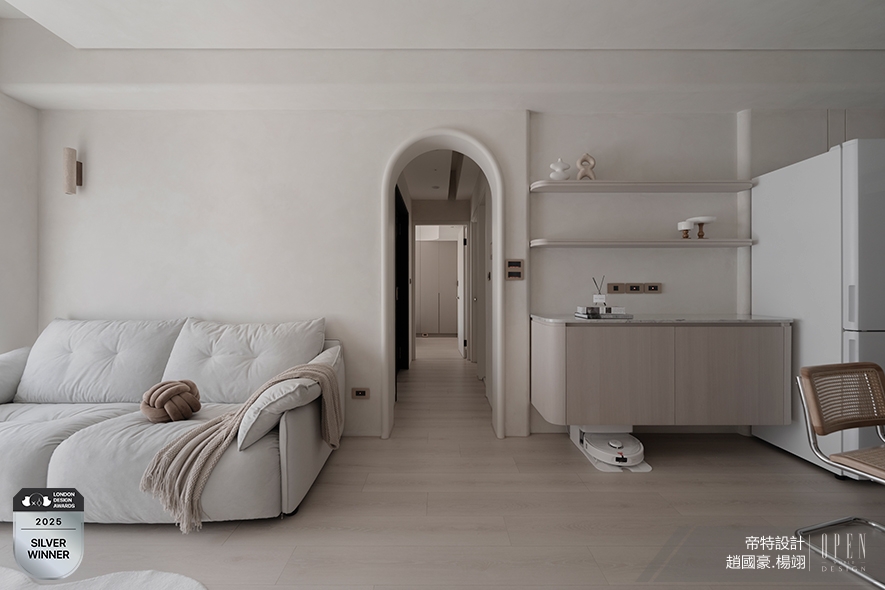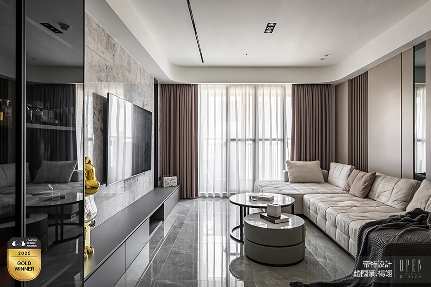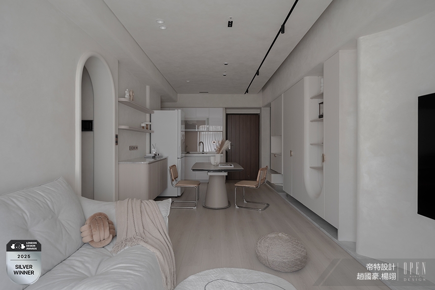 以精湛工藝詮釋當代美學,帝特設計 品牌總監 趙國豪、設計總監 楊翊 於《琢奕》巧妙融合黑白灰三色與奶茶暖調,運用鏡面反射與線性光帶,為年輕業主打造處處皆美景的輕奢居所;而《粹境》則以侘寂美學為本,透過柔和曲線與多層次光影設計,營造如雲朵般輕盈悠然的生活場域。兩件作品分別奪得本屆賽事「金獎」與「銀獎」榮耀,印證團隊在空間美學上的卓越成就!