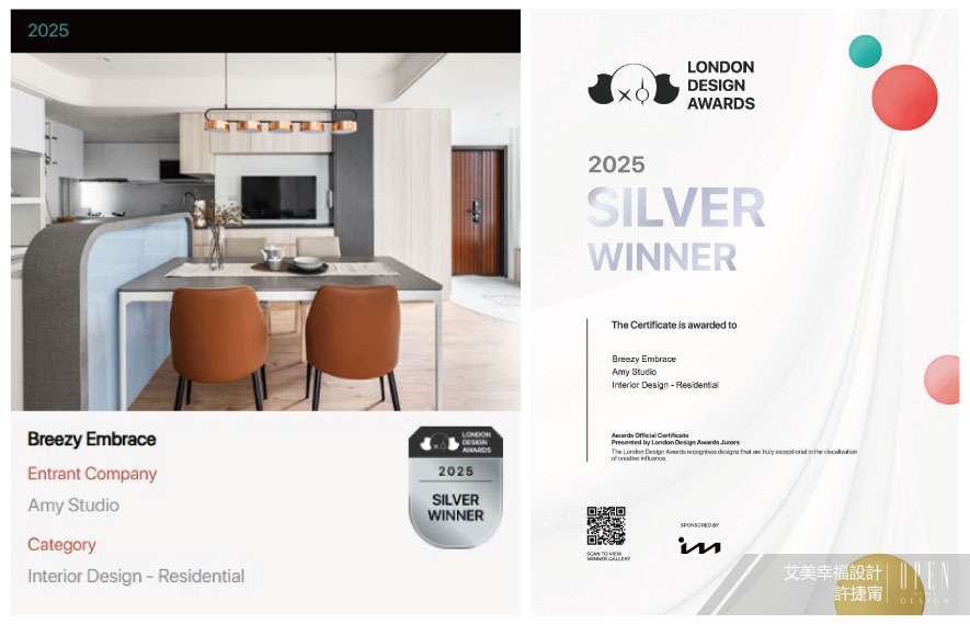 【艾美幸福設計】2025 LONDON Design Awards 許捷甯煦調明宅傾照銀彩!