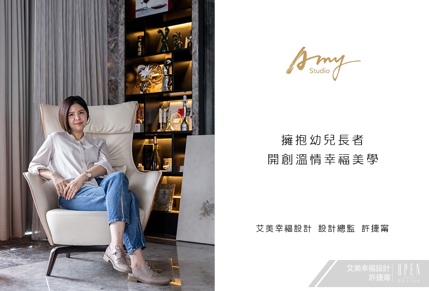 「讓『設計』不只是妝點空間的手段,而是成為所有家庭創造美滿生活的渾厚基礎」──每當品味艾美幸福設計的作品,便可充分體會此話語的意義;長至行動不便之耆老、幼至嗷嗷待哺的嬰孩、乃至肩負重擔的新手父母,設計總監許捷甯對每位客戶的真心關切與重視,經由契合各人需求的嚴謹選材及智能設備輔助,細細雕琢為長幼皆宜的健康溫馨住所,帶予各地群眾幸福滿分的友善通用設計!