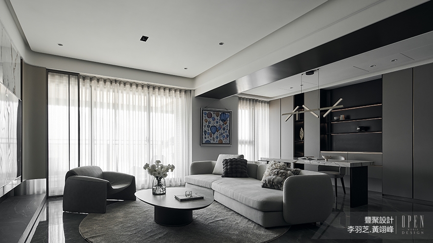 ▲視「通透」為作品核心,客廳以單椅取代量體較大的沙發,令光自在穿行於無壓場域,塑造輕盈柔和氛圍。