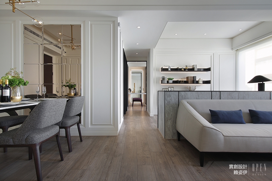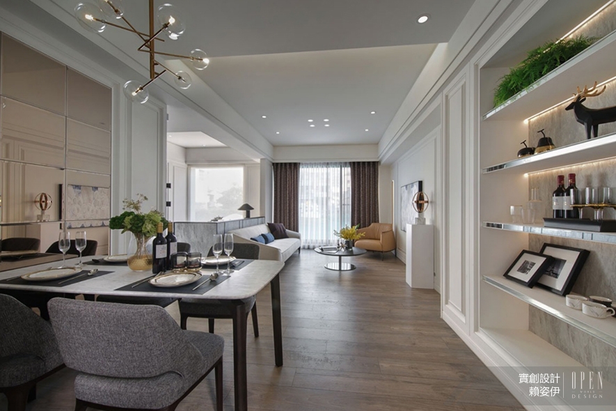 「資源的優化運用,是永續實踐的一環,而預算的精準配置,則是實現理想空間的關鍵。」當預算與理想產生拉鋸時,賴總監會建議業主優先投資於日常生活的主要空間,例如主臥室、客餐廳,至於尚無人員使用的次臥可選擇暫緩規劃,以留白的方式方便日後調整。實創設計以周全且彈性的資源配置思維,貼合當下,兼容未來想像,讓空間得以隨時間需求,從容成長與轉變。