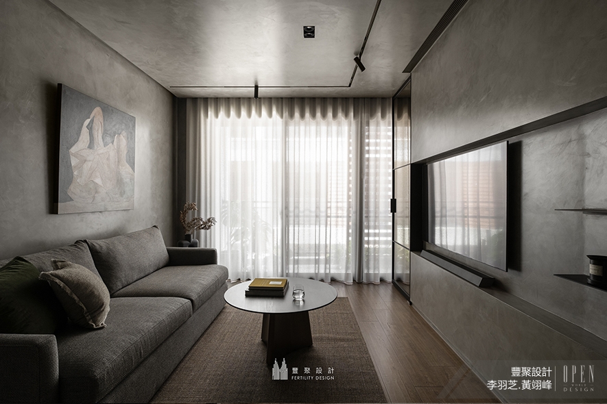 另一件《Gentle Weave 織森之紳》為新成屋案例,業主是一位年輕企業主,數年前就尋求豐聚團隊規劃客變設計,未料錯過建案客變期;多年間,屋主始終將豐聚列為首選,待預售屋交屋後,再次聯繫團隊展開設計合作。「這間案子最大的特色是導入智慧宅系統,從燈光自動感應到日常操作,皆可遠端掌控,滿足獨居業主對自用宅融匯科技與機能的嚮往。」從四口之家到單身男屋主,儘管風格迥異、互動方式有別,兩位總監仍一致秉持以人為本的出發點,透過精準而細緻的設計安排,打造出真正適合他們的空間。