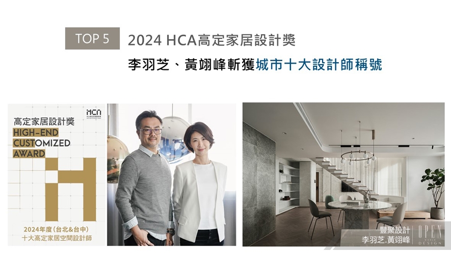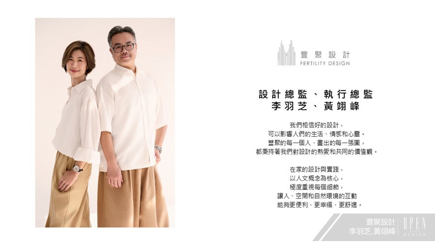 以「家如飯店」的精緻體驗為核心理念 豐聚設計 設計總監 李羽芝、執行總監 黃翊峰 攜手領軍,將深厚美學涵養與細膩人文感知,打造融合藝術與機能的理想居所,展現其對生活質感的極致追求——設計,從不是表象的綻放,而是對心之所向的回應。現在,就跟隨OPEN團隊的腳步,一同回顧李羽芝、黃翊峰總監2024至2025年間的傑出表現!