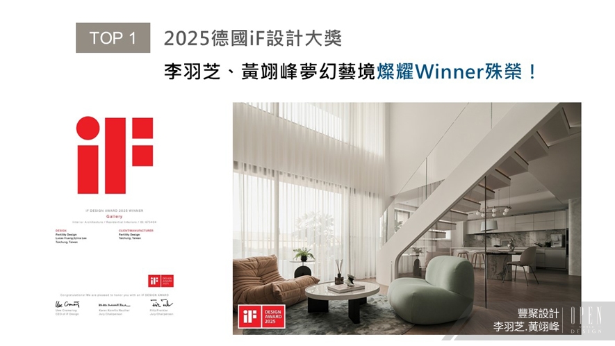 2025年初,豐聚設計以《Gallery 藝境》榮獲德國 iF 設計大獎,在國際舞台嶄露頭角,面對國際肯定,總監李羽芝與黃翊峰依然堅守初心。本次專訪中提及,團隊以縝密心思梳理業主需求,並親力奔走各工地,嚴控工程品質,最終交出讓人滿意的成果。此篇豐富內容的專訪,獲得聯合新聞網推薦刊登!