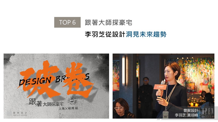 由OPEN DESIGN、越界遊學、達人室內設計網和築場聯合主辦,於去年底在上海和杭州兩地成功舉辦。此次活動以「深入豪宅設計,探討未來趨勢」為核心,彙聚來自海內外各地區眾多設計師,以實地考察和深入研討的形式,全方位解析頂奢豪宅的設計與市場邏輯。此行,豐聚設計總監李羽芝作為受邀設計師之一,也在本次活動中展現其對豪宅設計的獨到理解與創新思維。