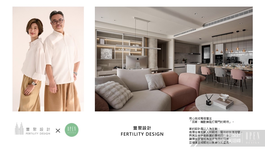在榮耀與肯定背後 豐聚設計 設計總監 李羽芝、執行總監 黃翊峰 從未停下腳步,持續奔走於各個案場之中,以寸寸匠心雕琢,將每位業主的理想化作真實風景,並堅守品牌初衷——「回家,轉動鑰匙打開門的期待」,讓使用者在歸家的瞬間,都能感受到被理解、被呵護的那份貼近心底的柔軟與安然。