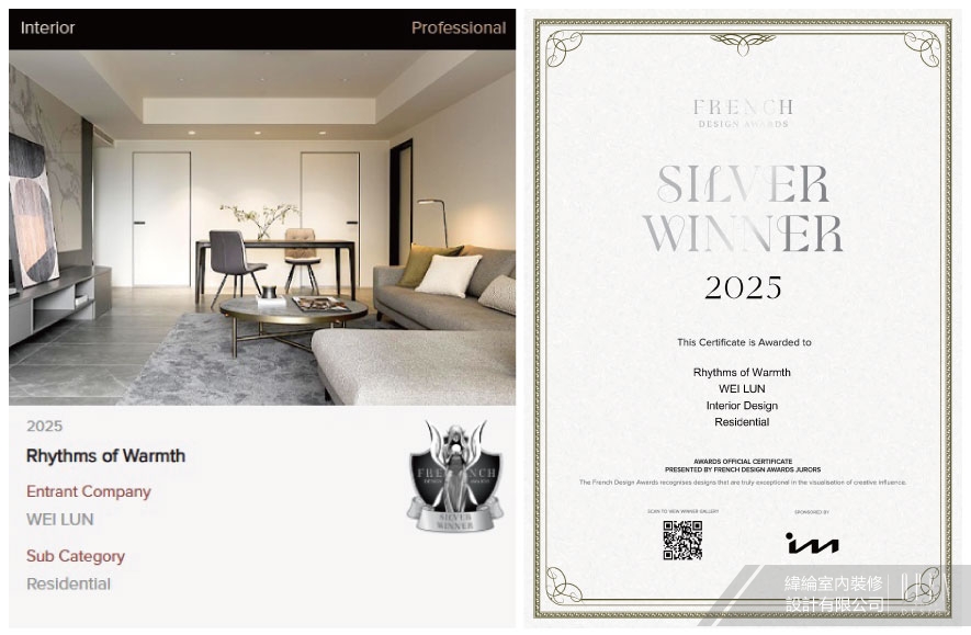 【緯綸設計】2025 French Design Awards 敞亮靈活家宅抱回銀獎榮譽!