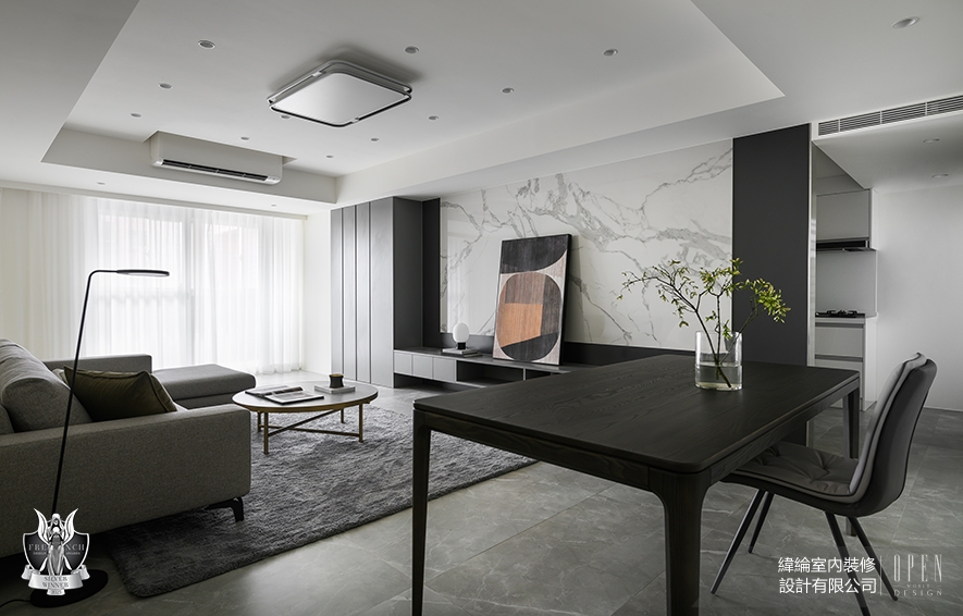 緯綸室內裝修設計有限公司 以四口家庭的居者生活步調為設計出發點,透過屏除餐廚區隔間牆及門片,打造客、餐、廚串聯為一的通透公領域,搭配便於移動的輕盈活動軟裝,讓作品《暖序》化作隨需求自由變化的靈活居所,視使用者便利性為首的貼心設計,贏得評審團的一致讚許,獲頒本屆賽事「銀獎」佳績!關於French Design Awards