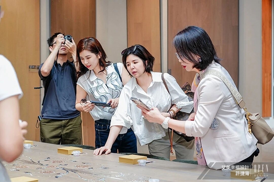 艾美幸福設計 設計總監 許捷甯 善用前往「浪潮100設計榮耀日」的機會,與一眾優秀設計師共同參與為期四天的「上海軟裝美學之旅」。從高端木材「書香門地」展廳起始,在一覽成功建材企業的背後秘辛同時,許總監點出其團隊蘊藏對質感溫度的講究、以及工匠細膩刻畫的工藝細節,即是讓品牌受到廣大群眾讚許的原因之一。
