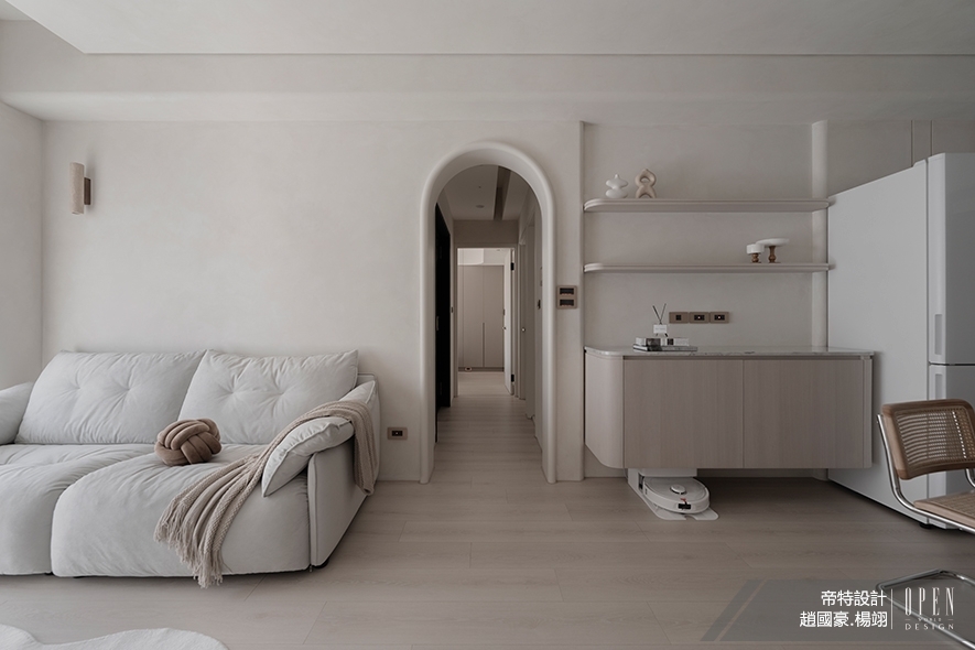 實際作業流程中,兩位總監皆會切實依循該設計核心分工合作。先由趙國豪總監洽談、接案後,從自身接觸異業專家的眾多經驗中凝練發想,給予團隊規劃的大方向;隨後交由楊翊總監統籌顧客的詳細需求,梳理業主作息、興趣和家庭關係,並經由設計手法擘劃便利收納、順暢動線、安全細節,最後將設計師平日對美學及實用性的高度追求,具體化為空間中恰到好處的視覺比例、材質選配,讓居者感受生活因設計改善,同時使設計真正成為美好日常的一部分。
