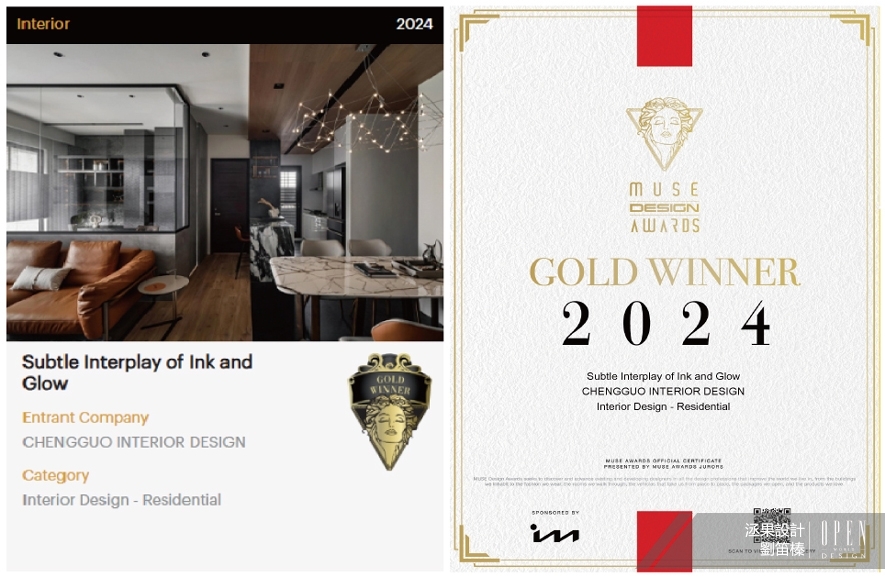 【洆果設計】2024 MUSE Design Awards 劉笛榛時髦雅緻居所攬得輝煌金光!