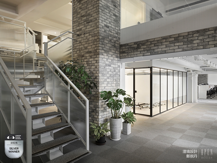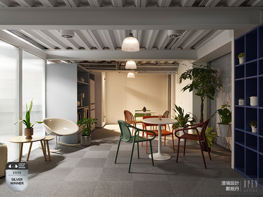 澄境設計 設計總監 鄭抿丹 深入聆聽業主需求、細膩洞察企業文化,靈活運用大地色系的柔潤暖意,融匯多處置入的植栽及繽紛跳色家具,讓科技公司的冷冽印象,盡數轉為天然元素的親和活潑感,辦公空間《淨光敘簡》道出公司對自然及科技和諧共榮的未來憧憬,受到評審團一致讚許,抱回本屆賽事「銀獎」殊榮!關於LONDON Design Awards
