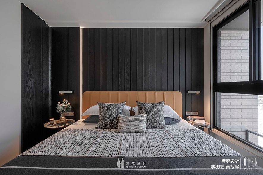 主臥——闃黑木紋雕刻理性俐落端景 跳色輕盈亦能醞釀靜謐氛圍